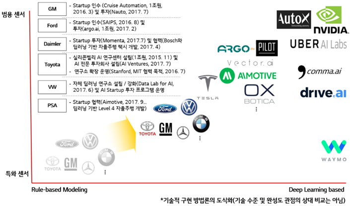 - 주요 완성차 업체인 도요타, 닛산, 혼다는 자율주행차 상용화 시점을 세계시장과 나란히 하기 위해서 적극적인 자율주행차 개발 및 투자