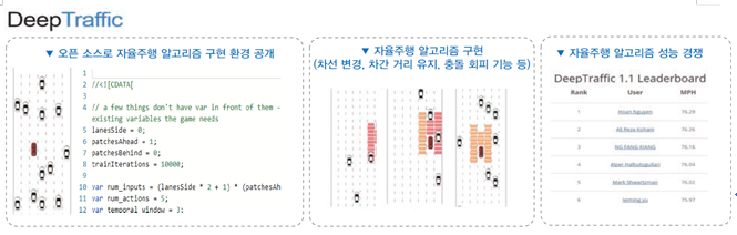 - (DeepTraffic 프로젝트) 복잡한 주변의 차량 흐름을 스스로 감지해 차선을 변경합니다.